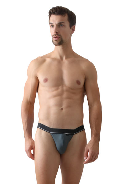 Slip tanga avec sa large ceinture noire soulignée d'un liseré banc. Non doublé devant. Ceinture douce. Sexy et idéal pour le sport.