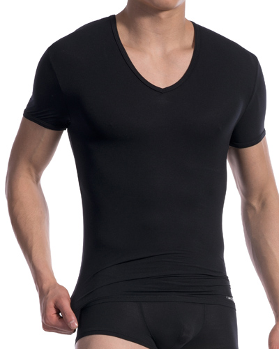 V-neck t-shirt. Nouvelle ligne permanente, sexy, noir mat. Elasticité, détails des finitions, tout e...