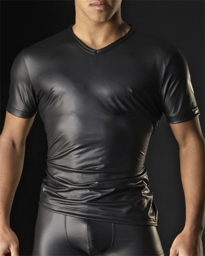 Description : V-neck t-shirt. Nouvelle ligne permanente, sexy, noir mat. Elasticité, détails des finitions, tout est au rendez-vous pour un plaisir maximum.