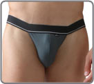 Slip tanga avec sa large ceinture noire soulignée d'un liseré banc. Non doublé devant. Ceinture douc...