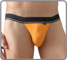 Tanga en coton et élastanne. Large ceinture élastique marquée GAUVINE. Devant doublé.