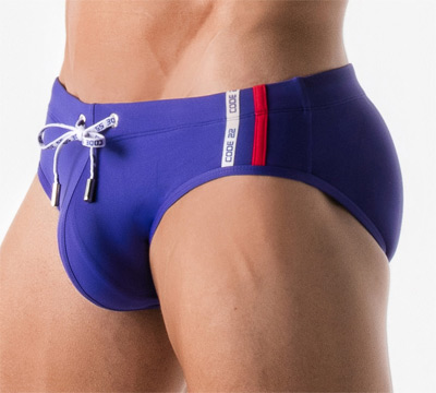 Descrição : Low-waisted swimsuit made from high-end fabric. Sporty look, thin colored stripes on the sides with Code 22 logo. Logo on the rear passer-by. Tightening cord for fit at the waist.